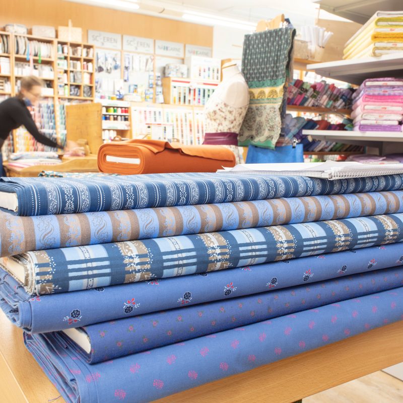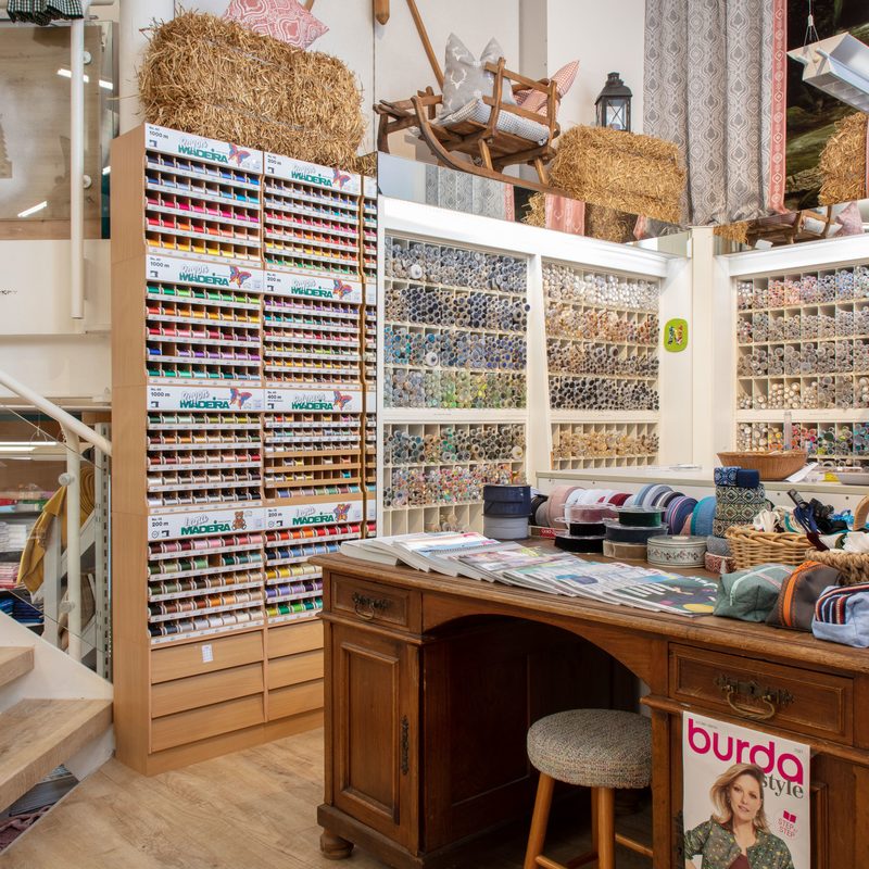 Auf über 300 Quadratmetern Verkaufsfläche finden Sie heute alles, was Sie zum Nähen brauchen, vor allem Stoffe in Hülle und Fülle.